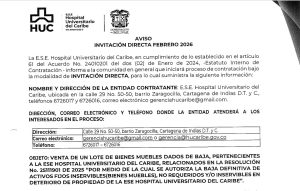AVISO DE PUBLICACION y CRONOGRAMA del proceso de la Invitación Directa de Febrero 2026