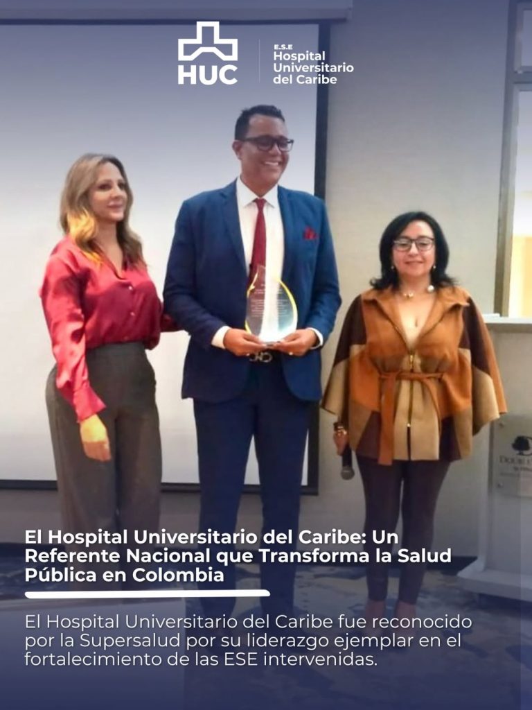 Cartagena de Indias, 4 de diciembre de 2025. El Hospital Universitario del Caribe (HUC) continúa consolidándose como uno de los pilares más sólidos del sistema público de salud en Colombia. Esta vez, la Superintendencia Nacional de Salud, durante la audiencia pública de rendición de cuentas de las ESE intervenidas, le otorgó un reconocimiento especial por su destacada labor como Hospital Padrino y referente nacional en la transferencia de conocimientos, metodologías y buenas prácticas a las Empresas Sociales del Estado (ESE) que se encuentran bajo medida de intervención.